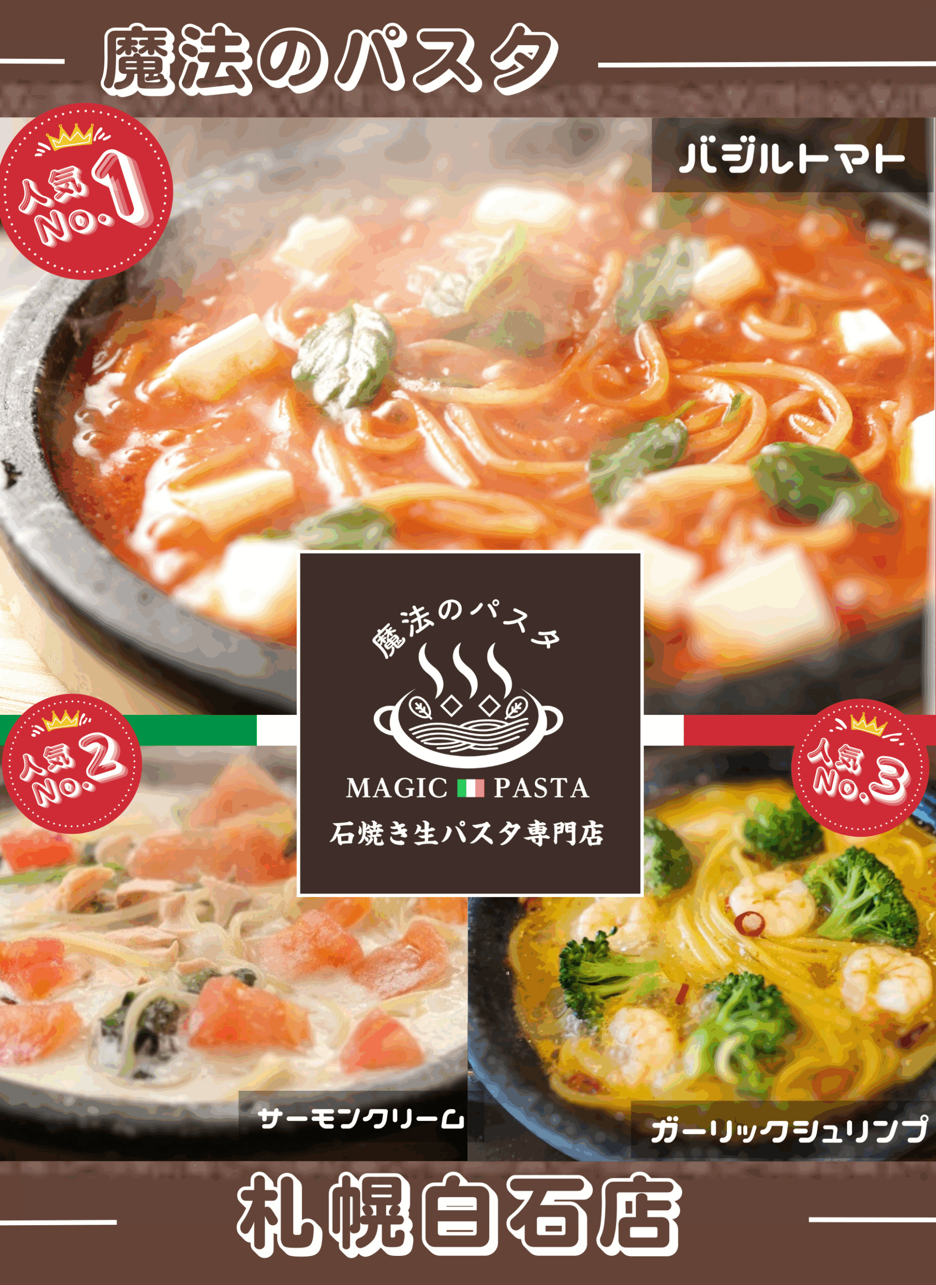 魔法のパスタ札幌白石店では、石鍋で仕上げるもちもち生パスタにぴったり合うサイドメニューを揃えています。ちょっとしたひと手間で味わいがグッと広がる「有料トッピング」、口直しに嬉しい「サラダ」、そしてソースを最後まで楽しめる「こんがりバケット」。どれもランチタイムをより満足にするための心強いアイテムです。