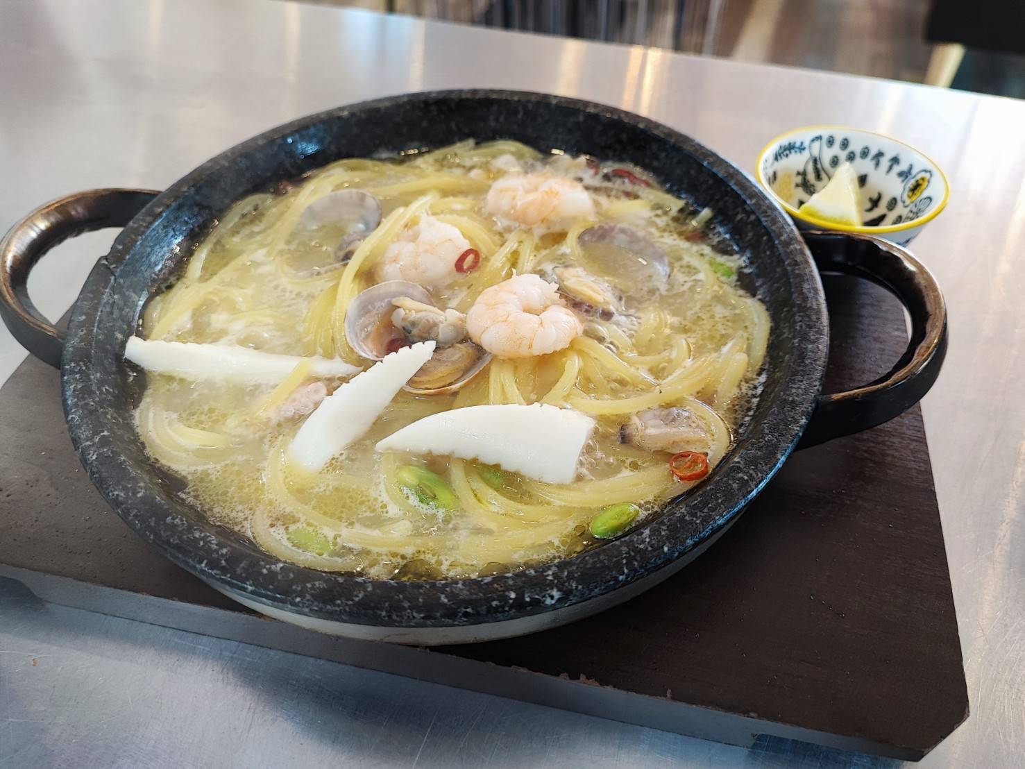 魔法のパスタ札幌白石店では、もちもち食感が自慢の生パスタを石鍋で提供しています。
