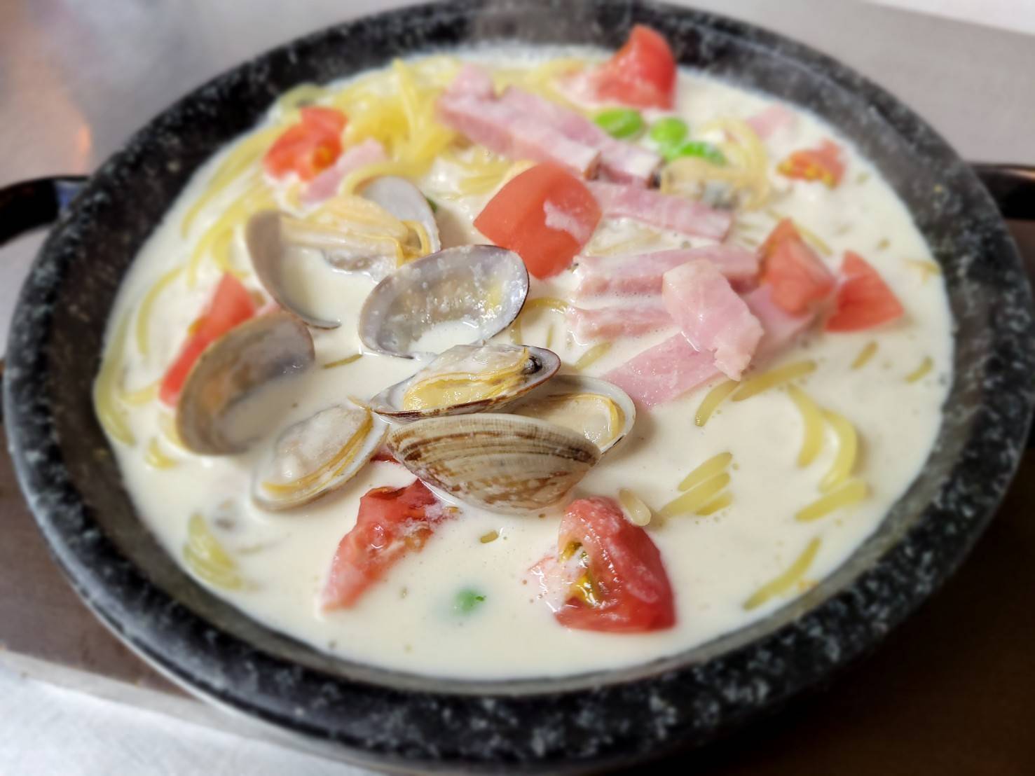やさしさとコクで午後を再点火する石鍋生パスタ。